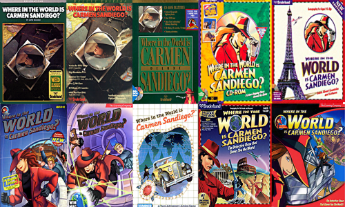 Carmen Sandiego é uma série de jogos feitos para videogames como MegaDrive e SuperNintendo na década de 90, mas seu maior sucesso foi na versão de PC.  Os jogos foram desenvolvidos com base em uma história em que a personagem principal, Carmen Sandiego, é uma ladra internacional que viaja pelo mundo roubando tesouros culturais. O jogador é um detetive que tem como missão capturá-la e recuperar os objetos roubados.
